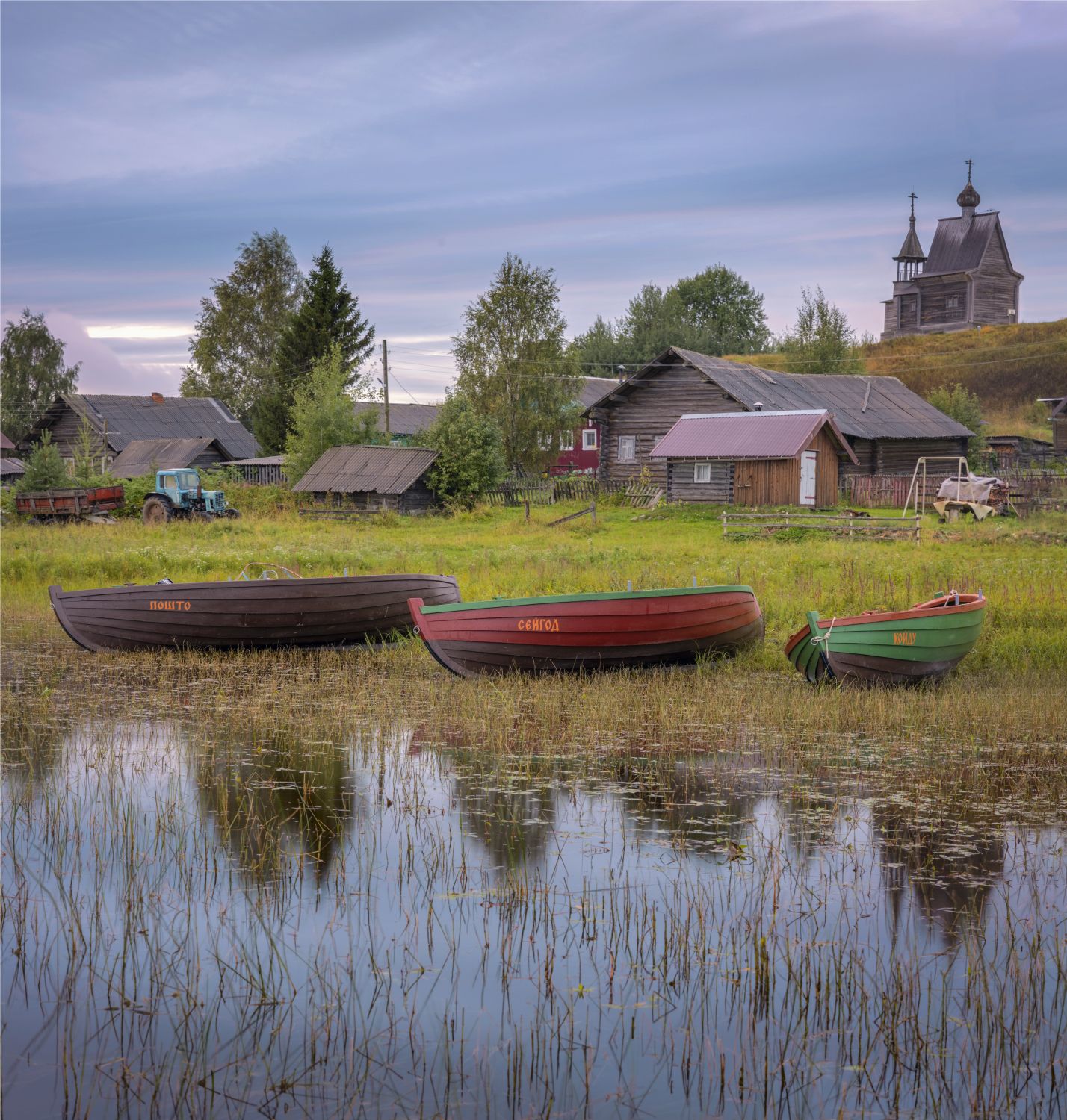 утро рассвет лодка озеро часовня деревня, Сергей Буторин