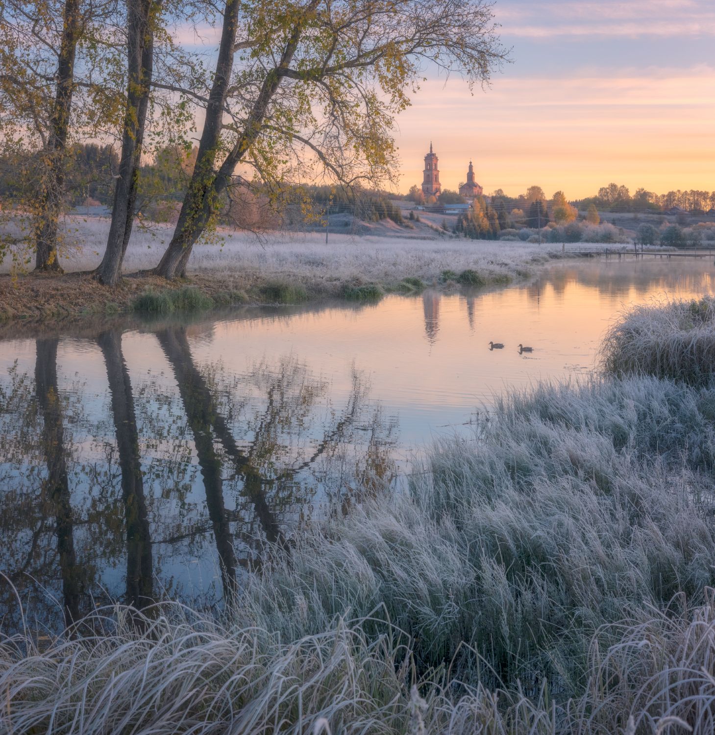 рассвет река туман церковь иней, Сергей Буторин