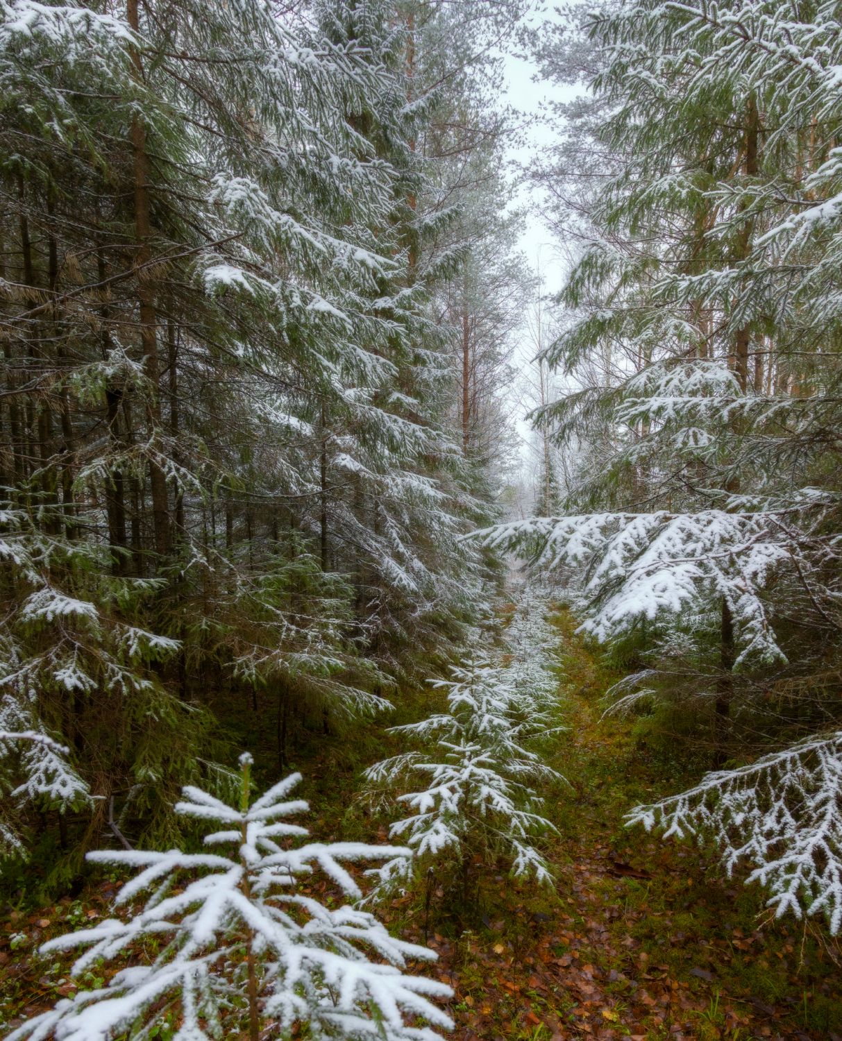 первый снег лес осень тропинка
