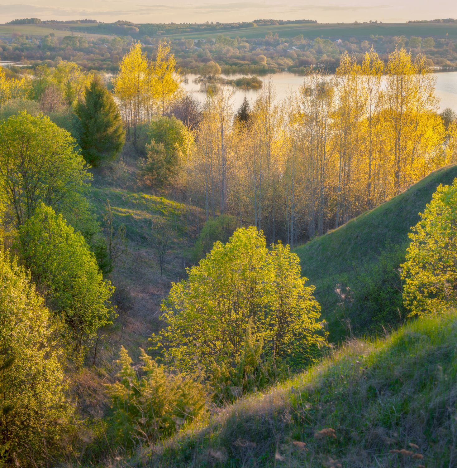 май вечер закат весна листья деревья разлив, Сергей Буторин
