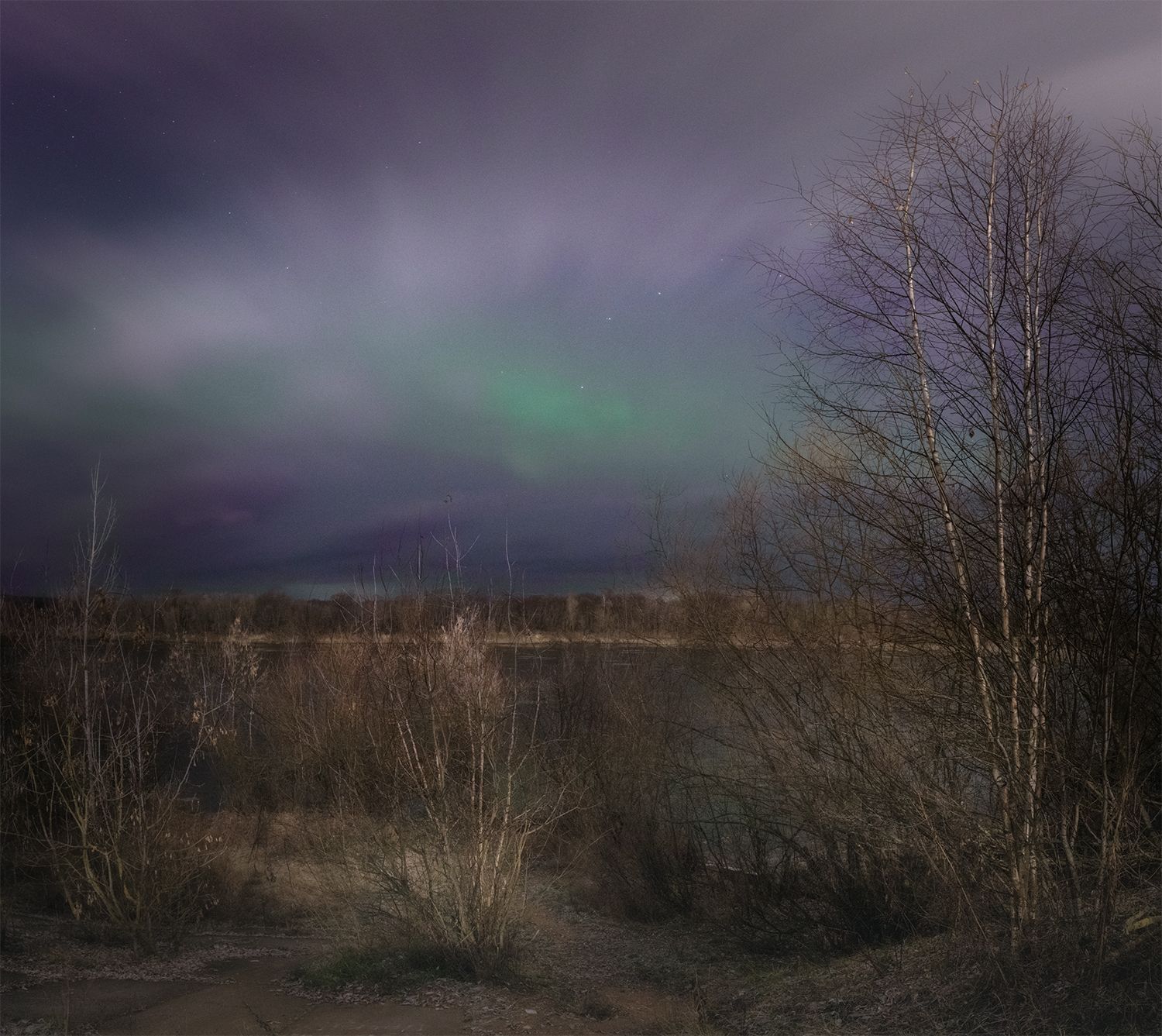 северное сияние ночь осень облака река, Сергей Буторин