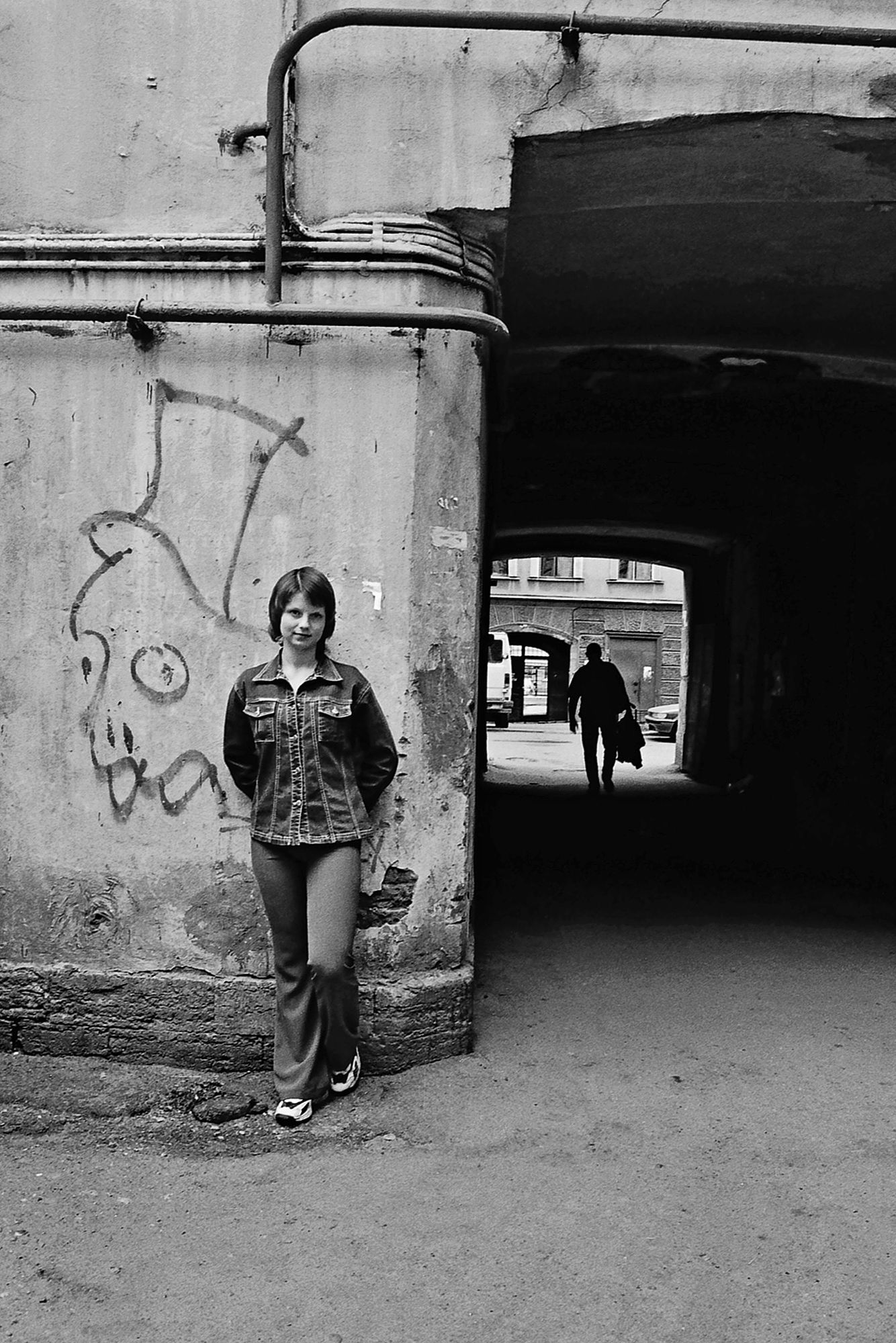девушка, двор, спб, апатиты, чб, Николай Смоляк