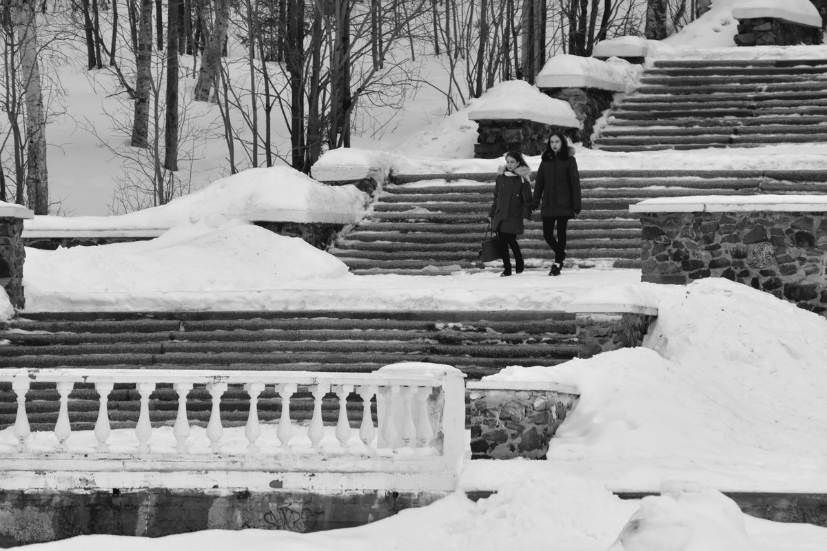 снег, лестница, апрель, мончегорск, чб, апатиты, Николай Смоляк