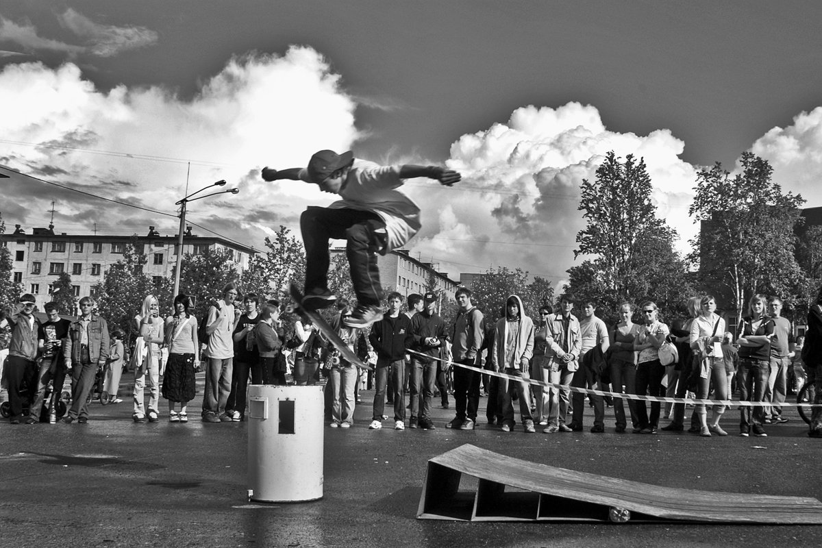 скейтборд, сотевнование, город, апатиты, прыжок, чб, Николай Смоляк