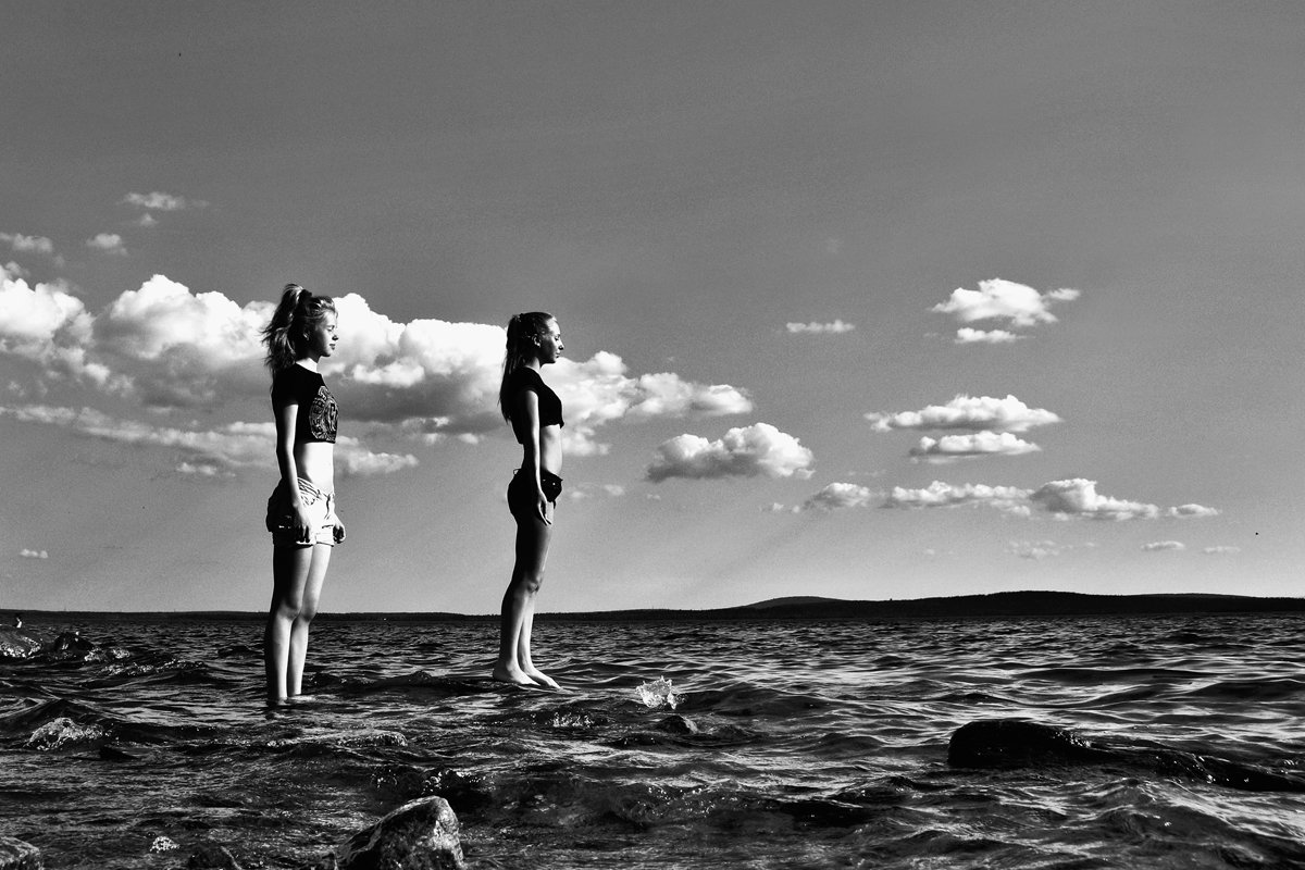солнце, озеро, облака, чб, лето, девушки, апатиты, Николай Смоляк