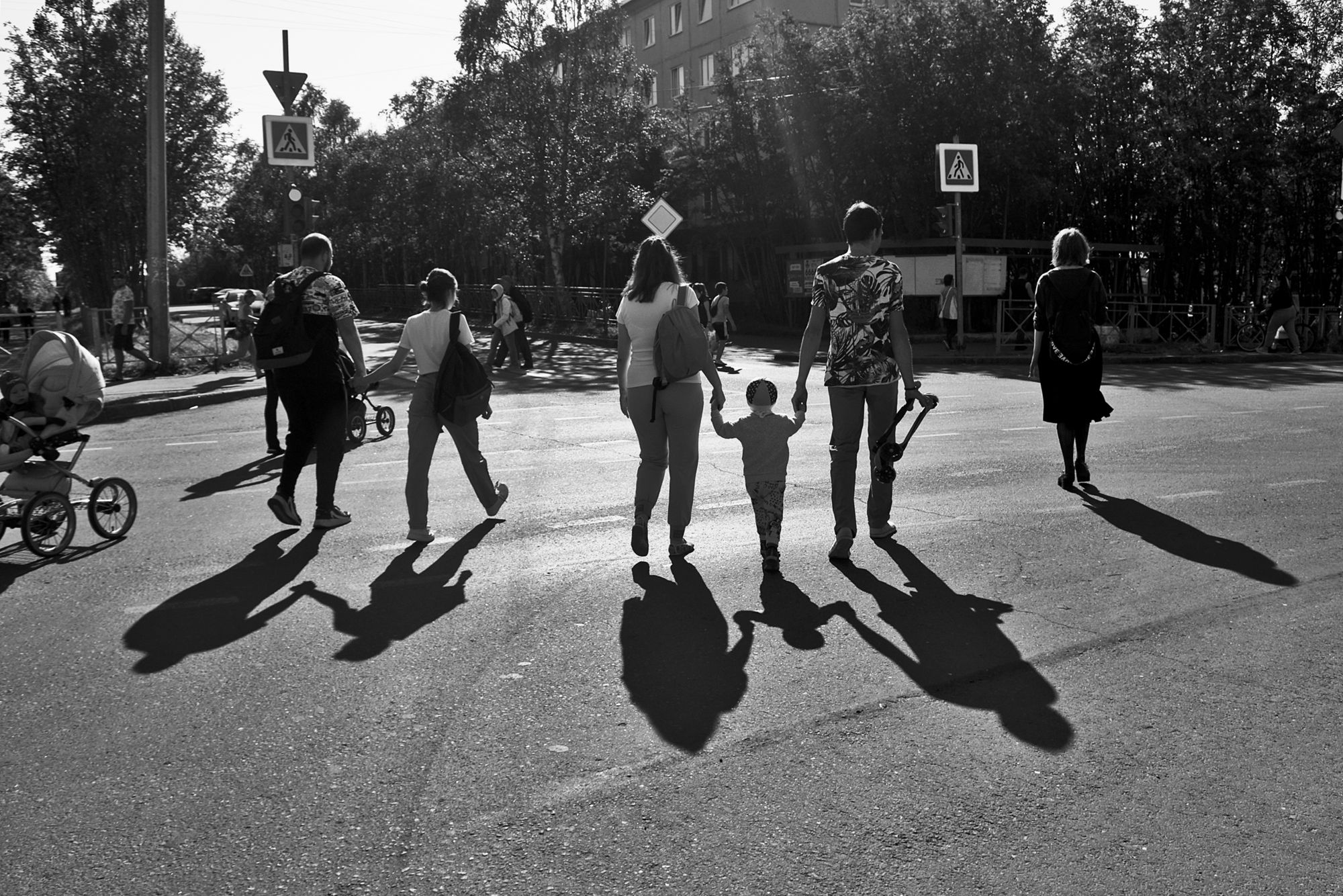 город, перекрёсток, светофор, тени, улица, апатиты, чб,, Николай Смоляк