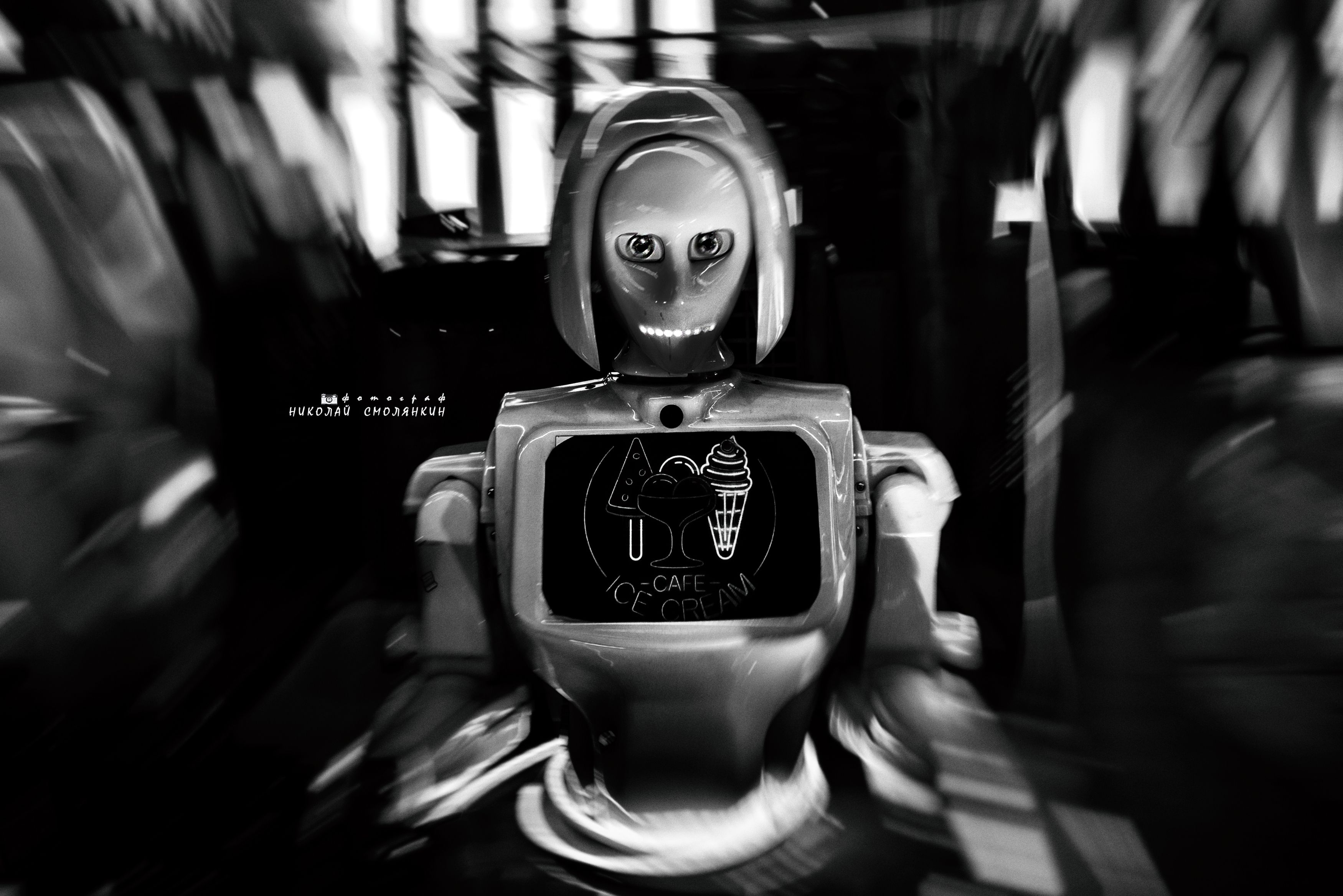 "А что было бы если власть на земле захватили бездушные роботы?" В переходе Москва-сити повстречал такую робота-мороженщика. Что-то мороженного расхотелось)