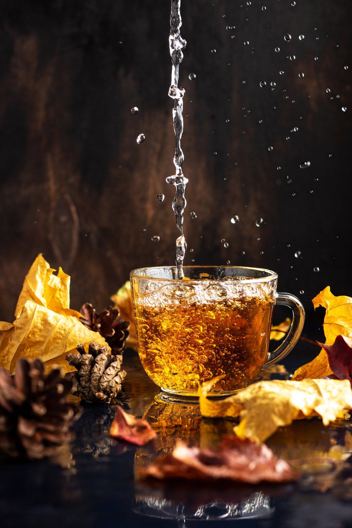 чай, осень, дождь, натюрморт, всплеск, брызги, осенние листья, чаепитие, Анна Сохрякова