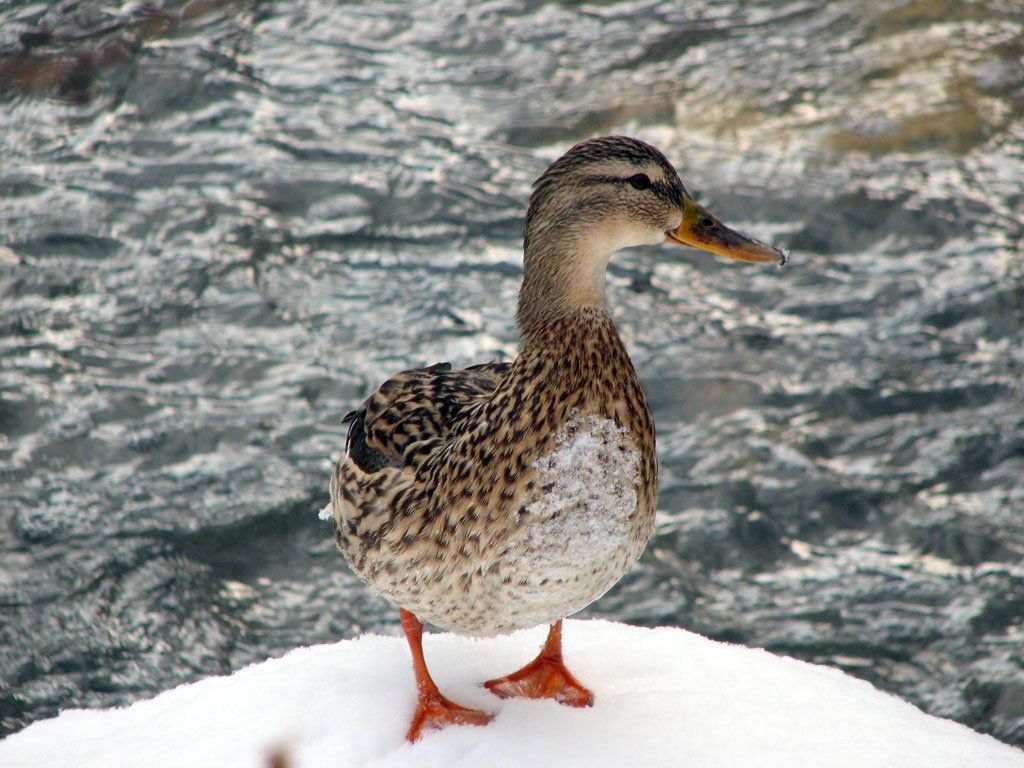 природа, река, вода, снег, утка, кряква, Юрий Соколков