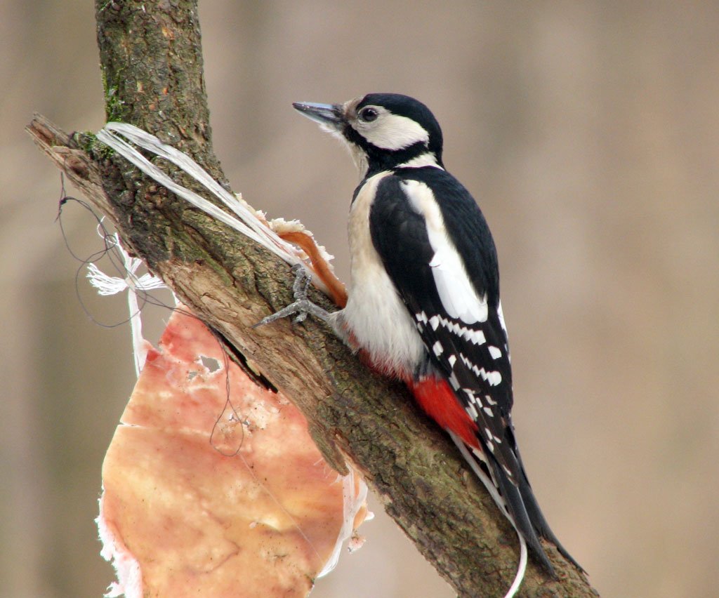 птица, сало, дятел, большой пестрый, зима, Юрий Соколков