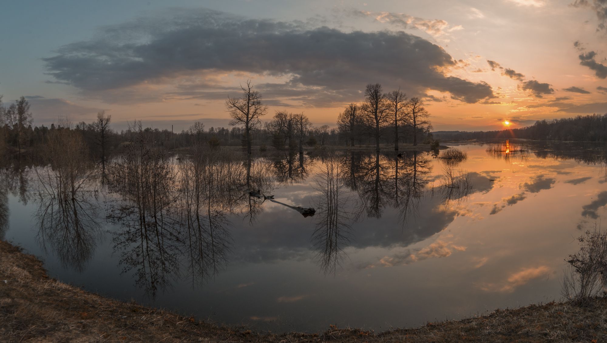 весна разлив половодье река клязьма закат солнце россия