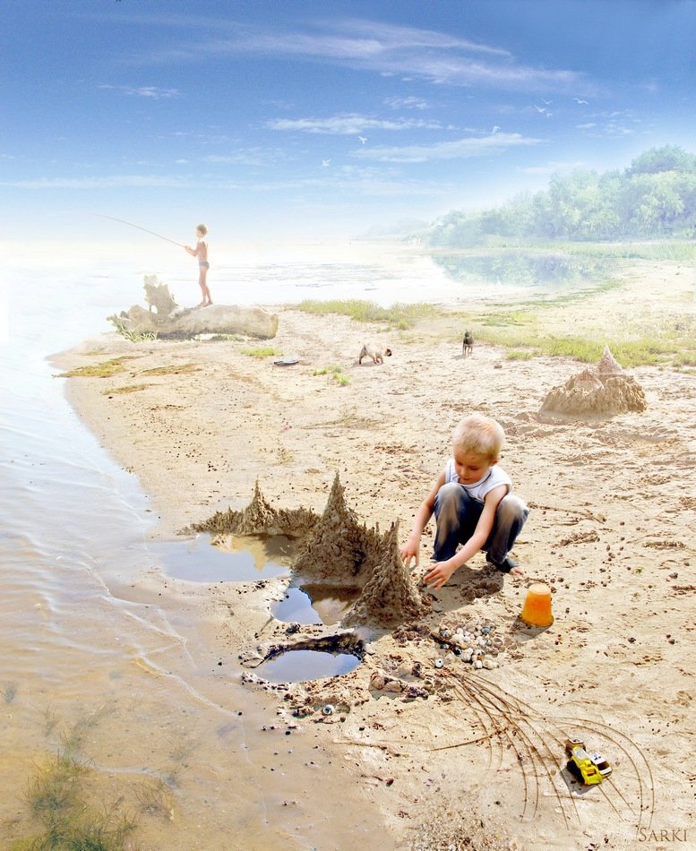 Кто-то строит замки из песка, а кто-то взял удочку и ловит себе рыбу.