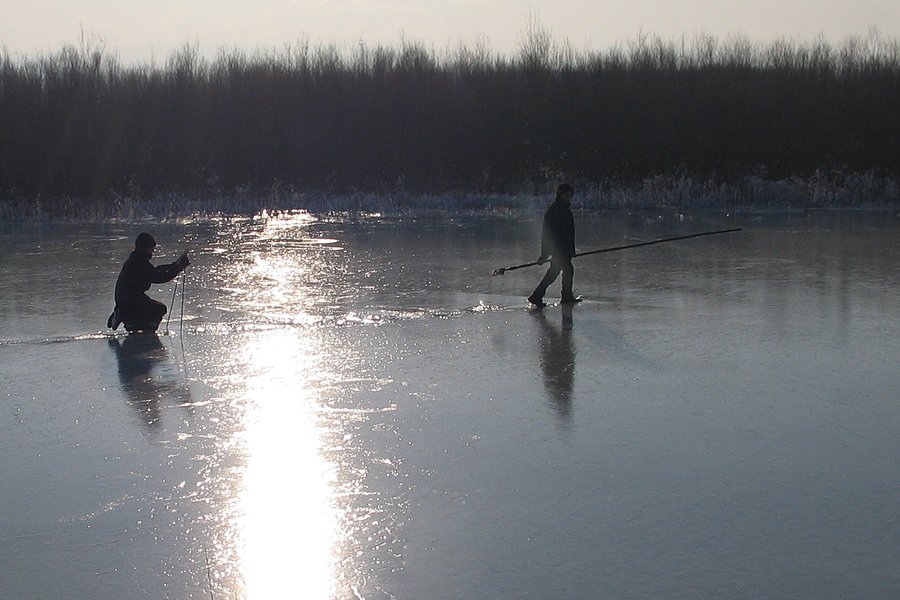 небольшая речка не далеко от станции Чилутай. такие речки промерзают до дна, оттаивать сверху начинают. на льду несколько сантиметров вода. в живую смотрится интересно, когда парни там бегают, катаются и при этом небольшая волна расходится.