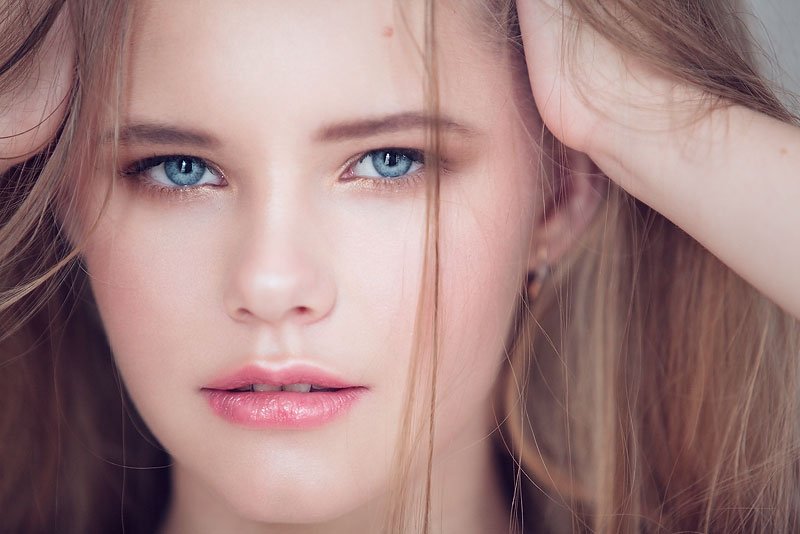 девушка, портрет, голубой, глаза, губы, волосы, улыбка, Сотников Иван