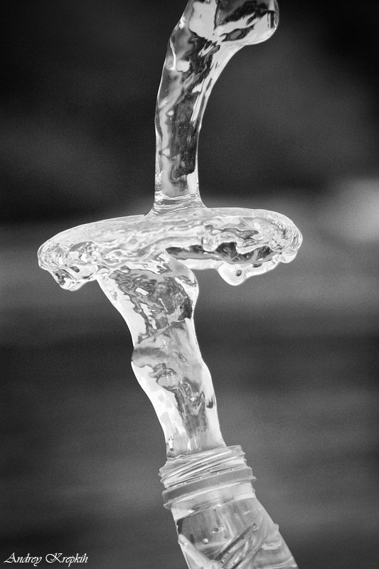 Покупаем пластиковую бутылочку сока с широким горлышком, выпиваем сок, наливаем доверху водой и затем быстро или медленно сжимаем! Вот и всё! Результаты всевозможные, у нас даже гриб поганка на кривой ножке получался, как зонтик!)