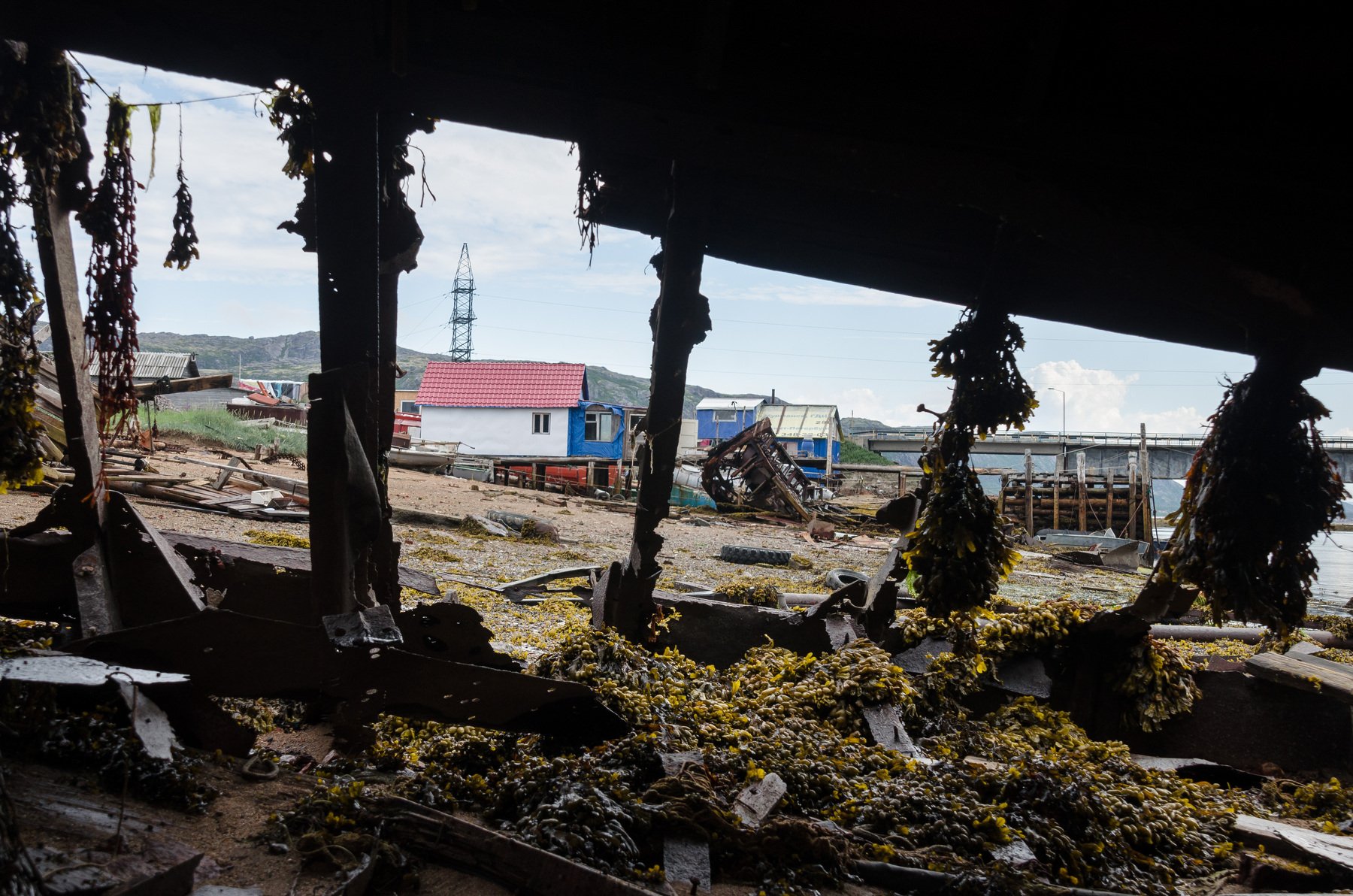 Териберка, Кольский, судно, рёбра, вид, домики, водоросли,, Ксения Соварцева