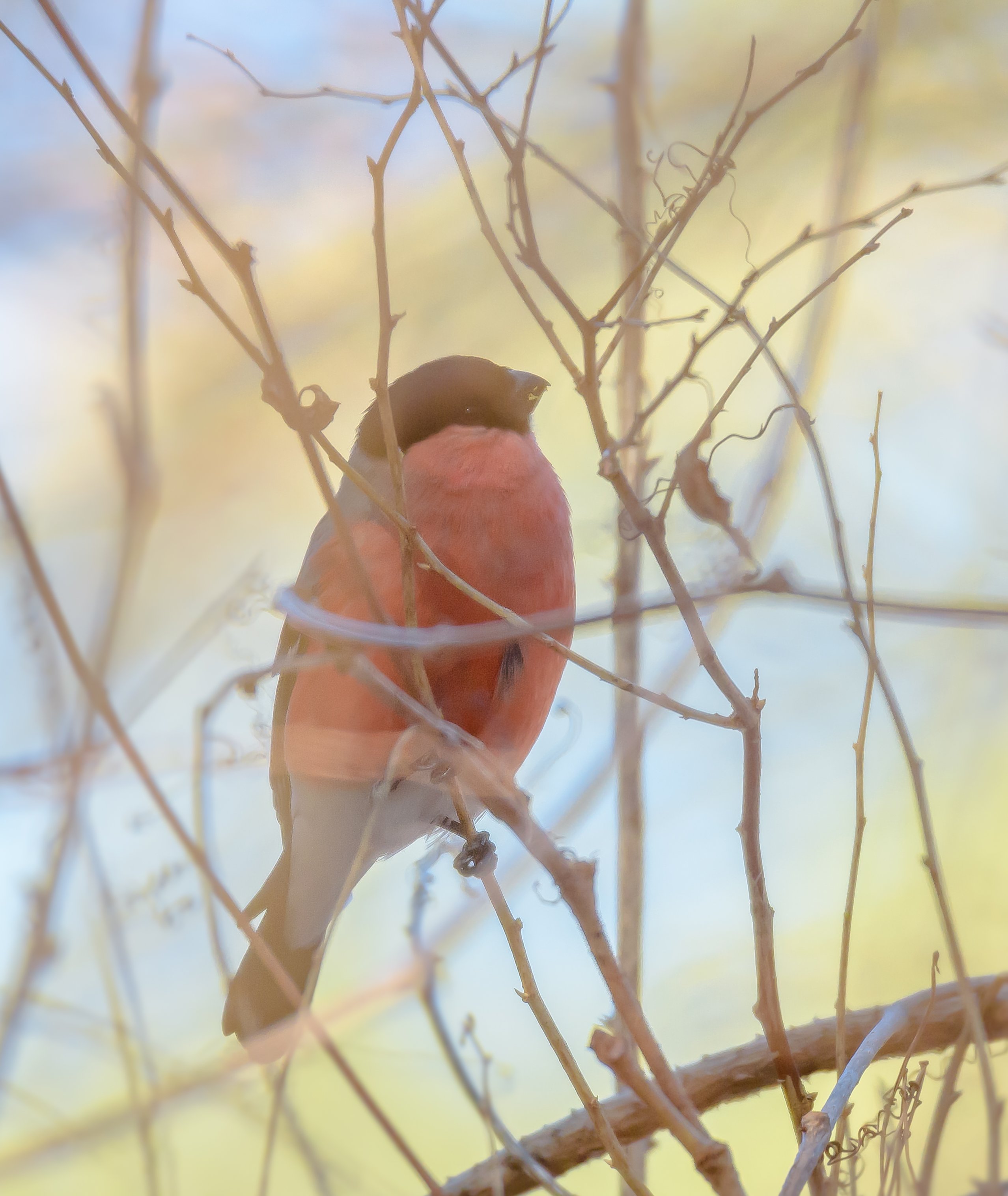 снегирь, арт, птица, весна, видение, в ветвях, лес, Ксения Соварцева