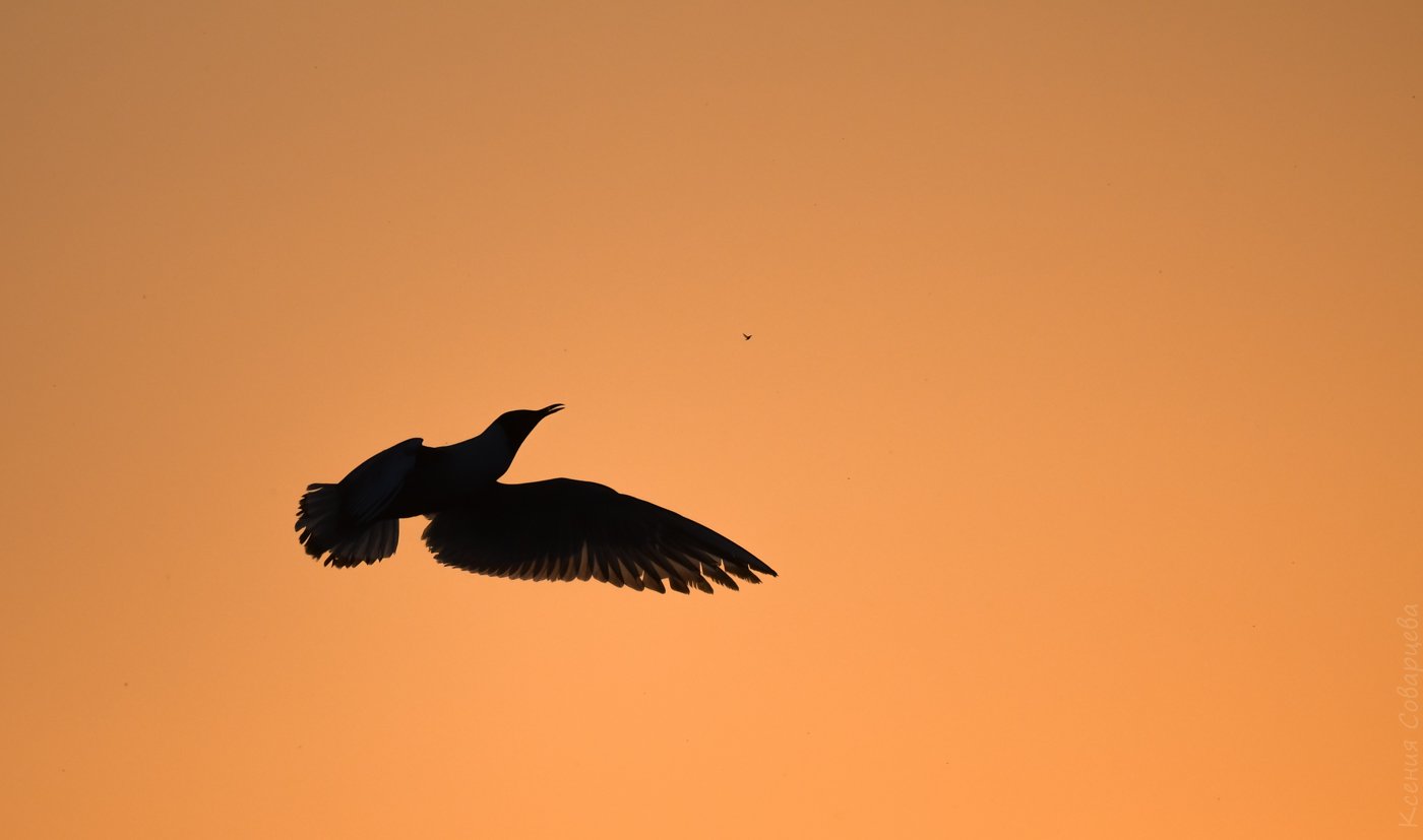 chroicocephalus ridibundus, озёрная чайка, речная чайка, обыкновенная чайка, питание птиц, закат, оранжевый, силуэт, вечер, май, птицы, дикая природа, подмосковье,, Ксения Соварцева