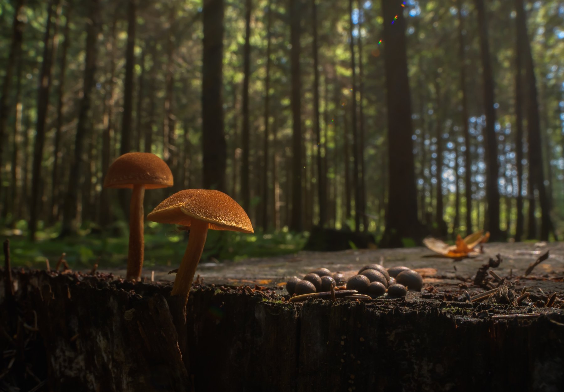 грибочки, вольчье вымя, ликогала, еловый лес, пень в лесу, Ликогала древесинная, Lycogala epidendrum, Ксения Соварцева
