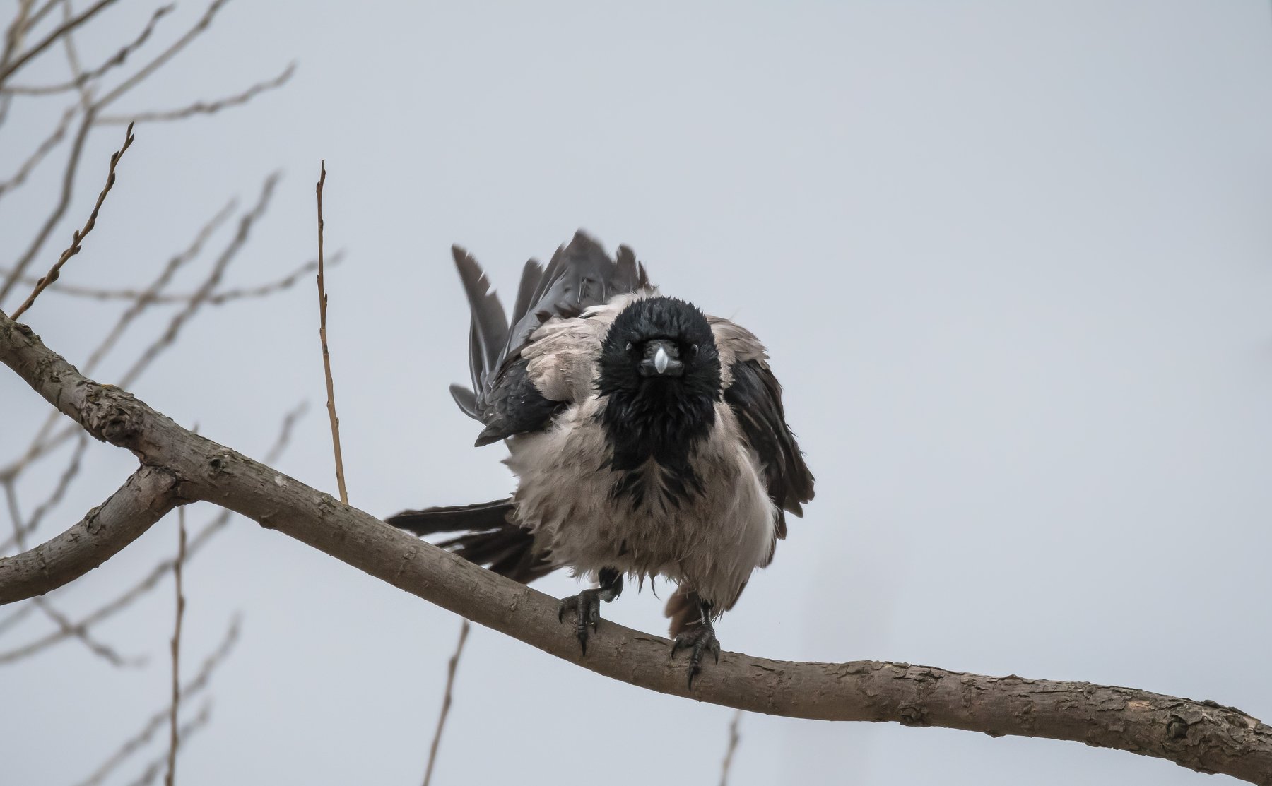 серая ворона, сумерки, птица на ветке, ветвь, суровая птица, перья, серый, Corvus cornix, Одинцовский район, Ксения Соварцева