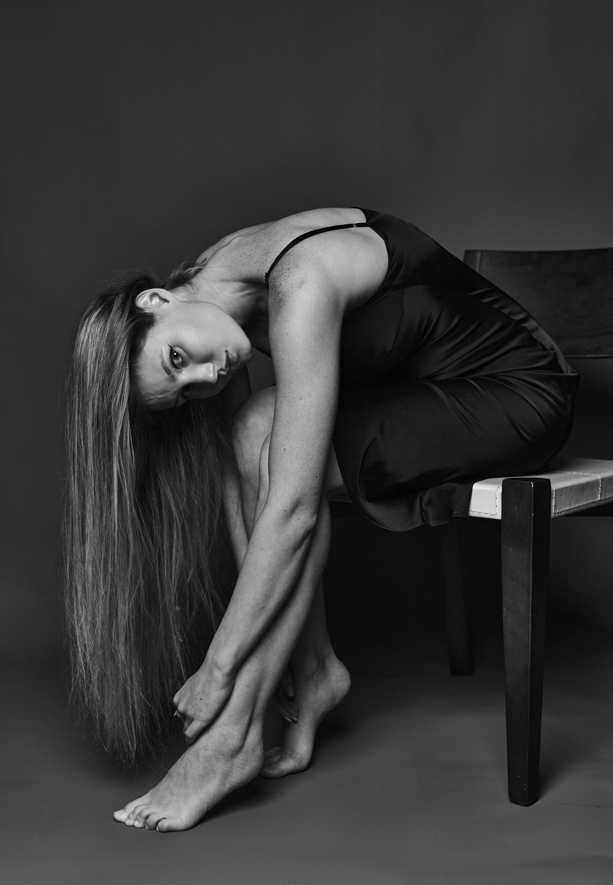 Лиза — тело в изгибе, как будто оно само рисует линии света и тени. Вы умело зафиксировали ту секунду, когда гибкость и сила сливаются — и взгляд, и поза, и даже волосы, касающиеся стоп, — всё это говорит о внутреннем напряжении, что почти осязаемо. Сильная работа — чисто, выразительно, без лишнего.