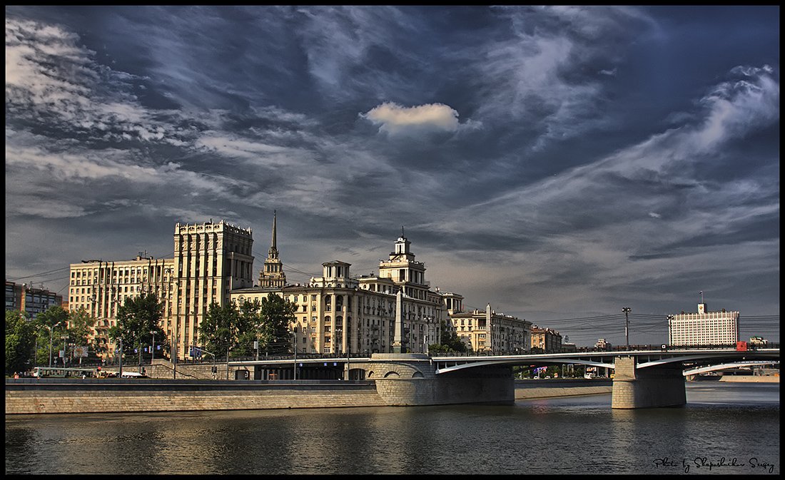 Визуальный завал из-за линии моста? Не думаю, что это страшно. Имхо, обрезать слева с первой колонады, чтобы взгляд сразу по фасаду здания направлялся к нац.лидеру