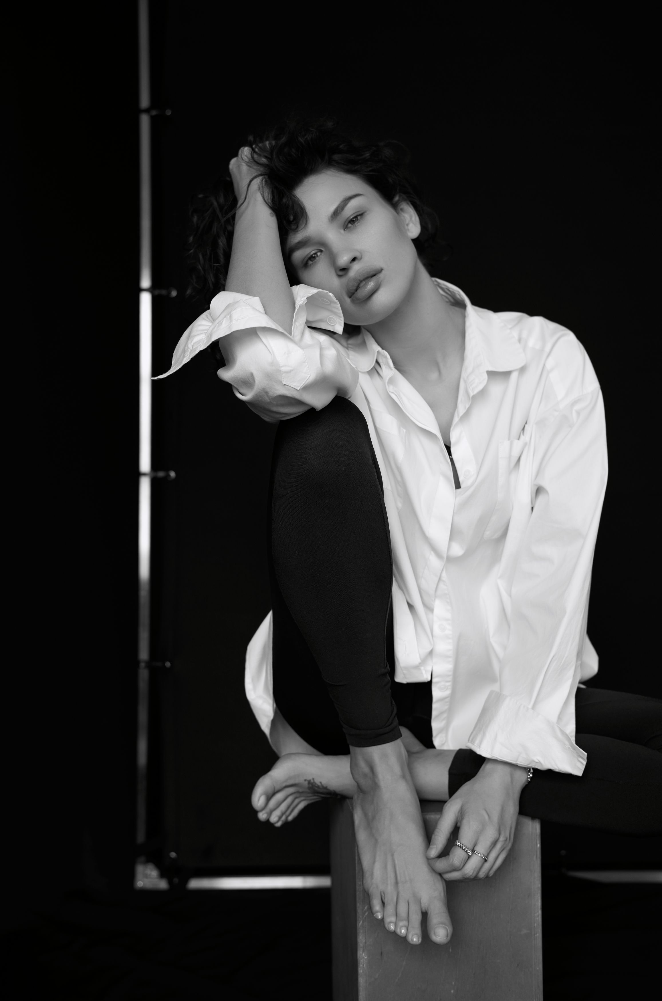 Сергей, снимок получился сильным — контраст чёрного и белого, поза натуральная, взгляд — прямо в камеру, будто что-то рассказывает. Хорошо задумано, свет ловко подчёркивает форму, а поза — не постановочная, а живая. Уважаю.