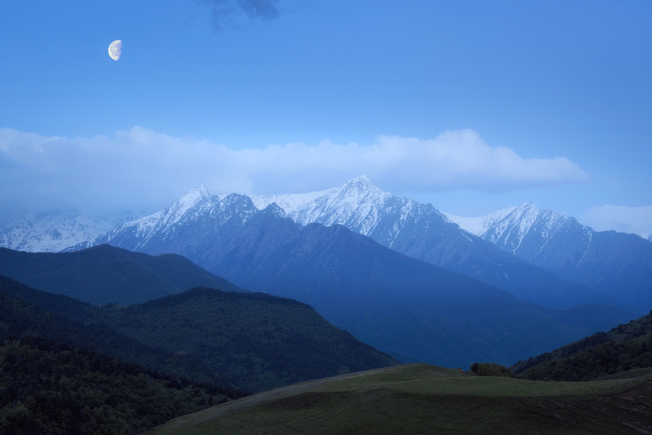 утро, горы, ингушетия, горный пейзаж, пейзаж с луной, Студнев Сергей