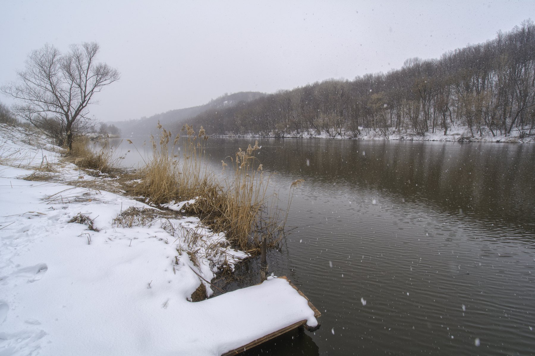 река, природа, пейзаж, снегопад, снег, Andrew Kolobov