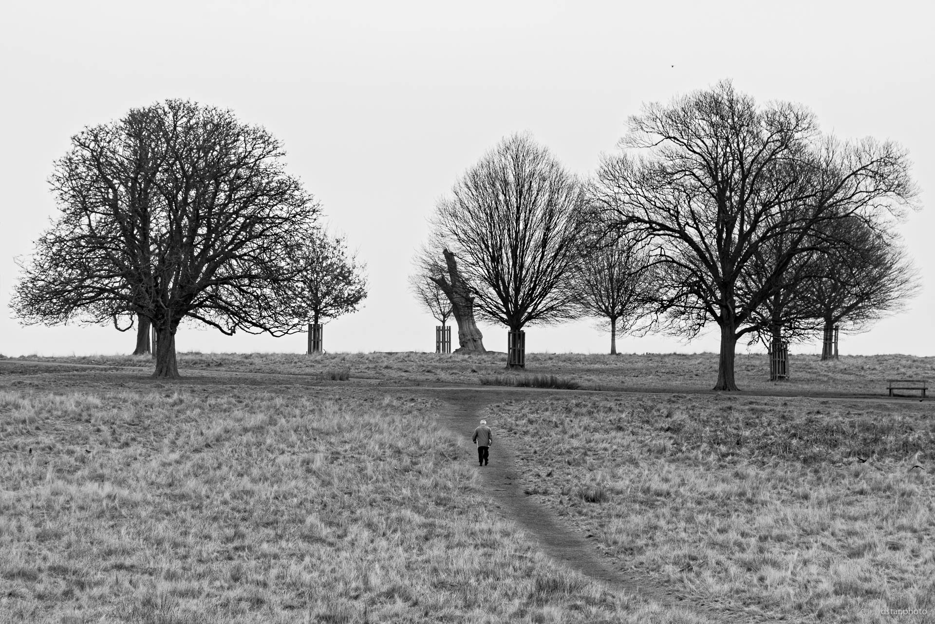 деревья, зима, черное белое, человек, парк, Дмитрий Старостенков