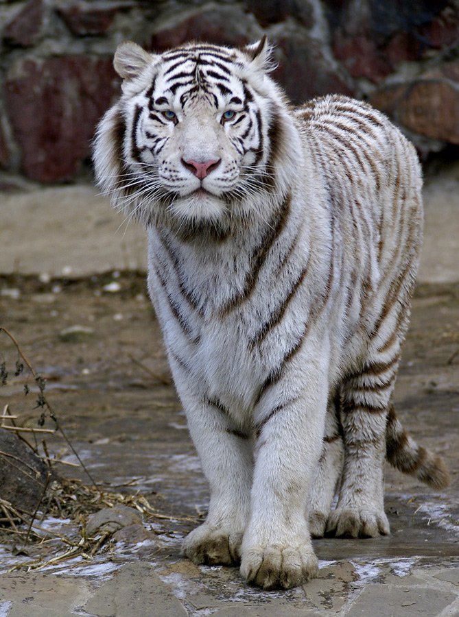 В Индии иногда встречаются и специально разводятся белые тигры, у которых по белому фону расположены коричневые полосы. У этих зверей голубые глаза. В связи с постоянным преследованием со стороны человека и неблагоприятными изменениями условий обитания численность тигра непрерывно падает, а область распространения сокращается