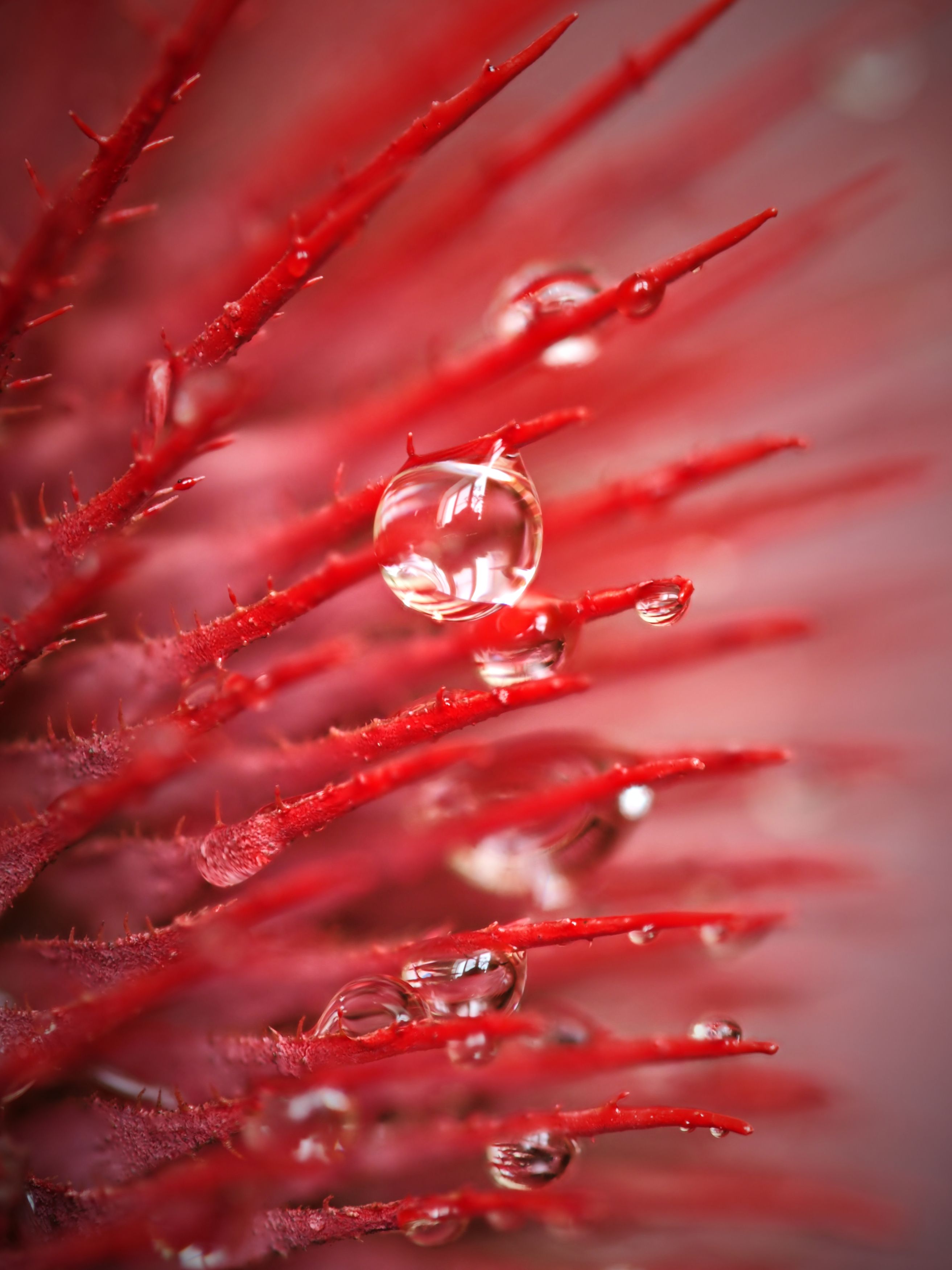 колючки, растение, красный, макро, капли, Сергей Калёв