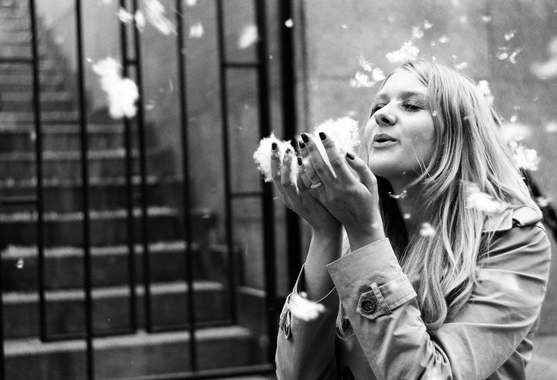 тополиный пух, девушка, портрет, пленка, зенит, чб, stereophoto