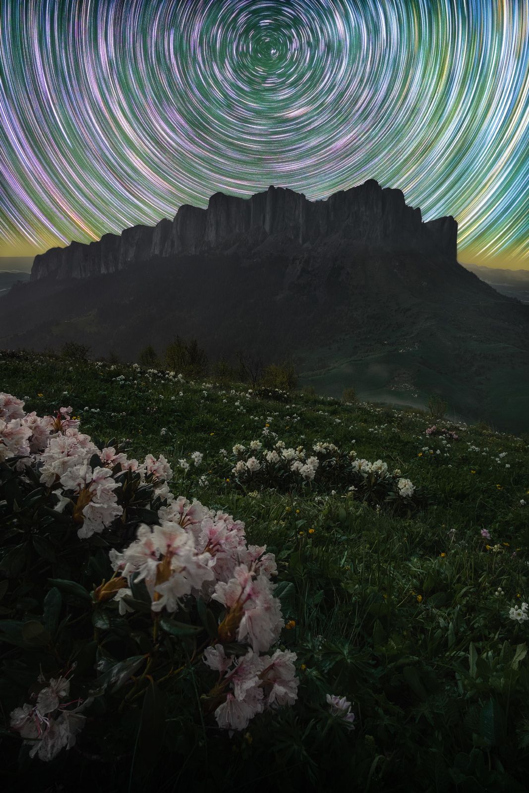 звезды, большой тхач, кавказ, адыгея, весна, рододендрон, астро, ночь, звездные треки, треки, startrail, startrails, Глеб Желтов