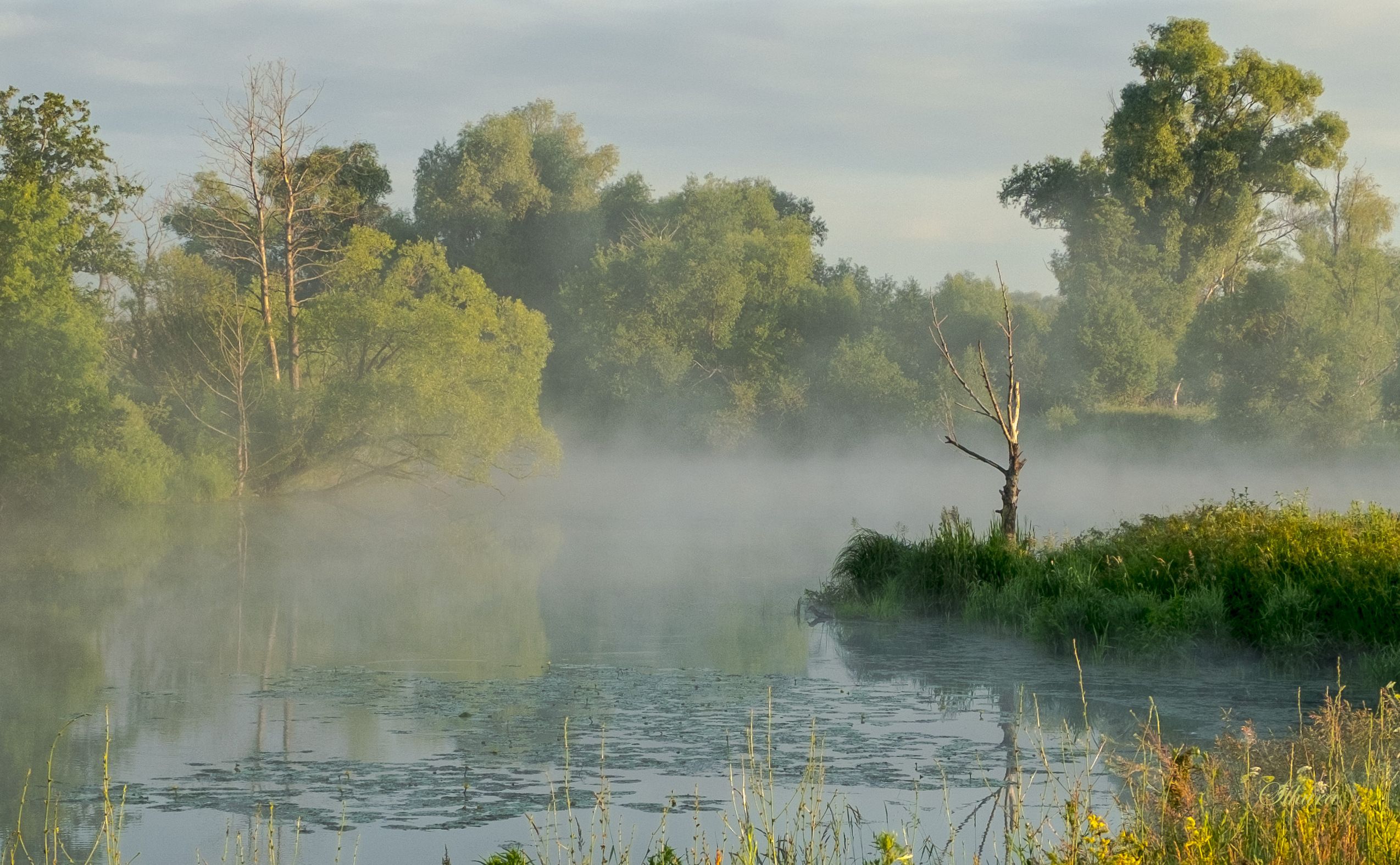 лето озеро туман утро природа пейзаж, Александр Строков