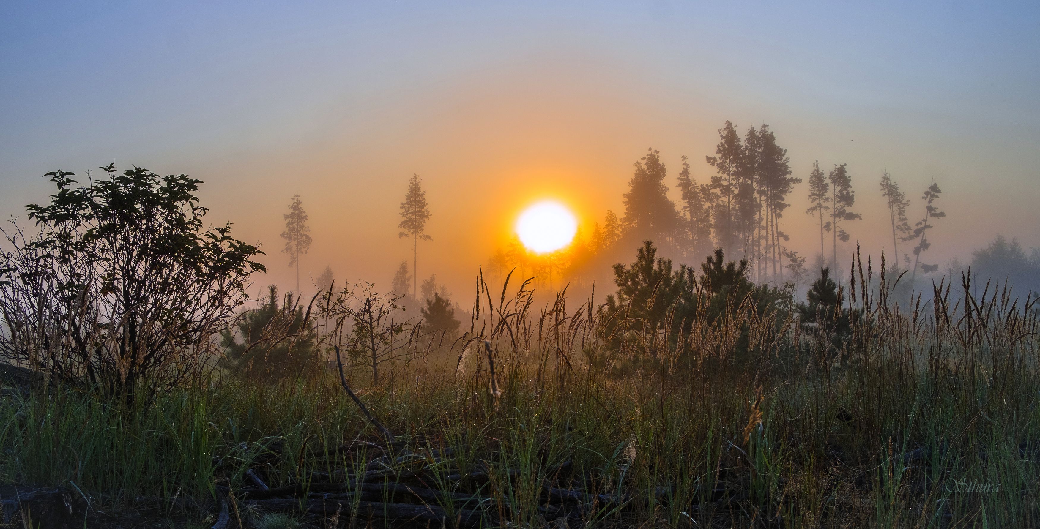лето лес туман рассвет природа пейзаж, Александр Строков