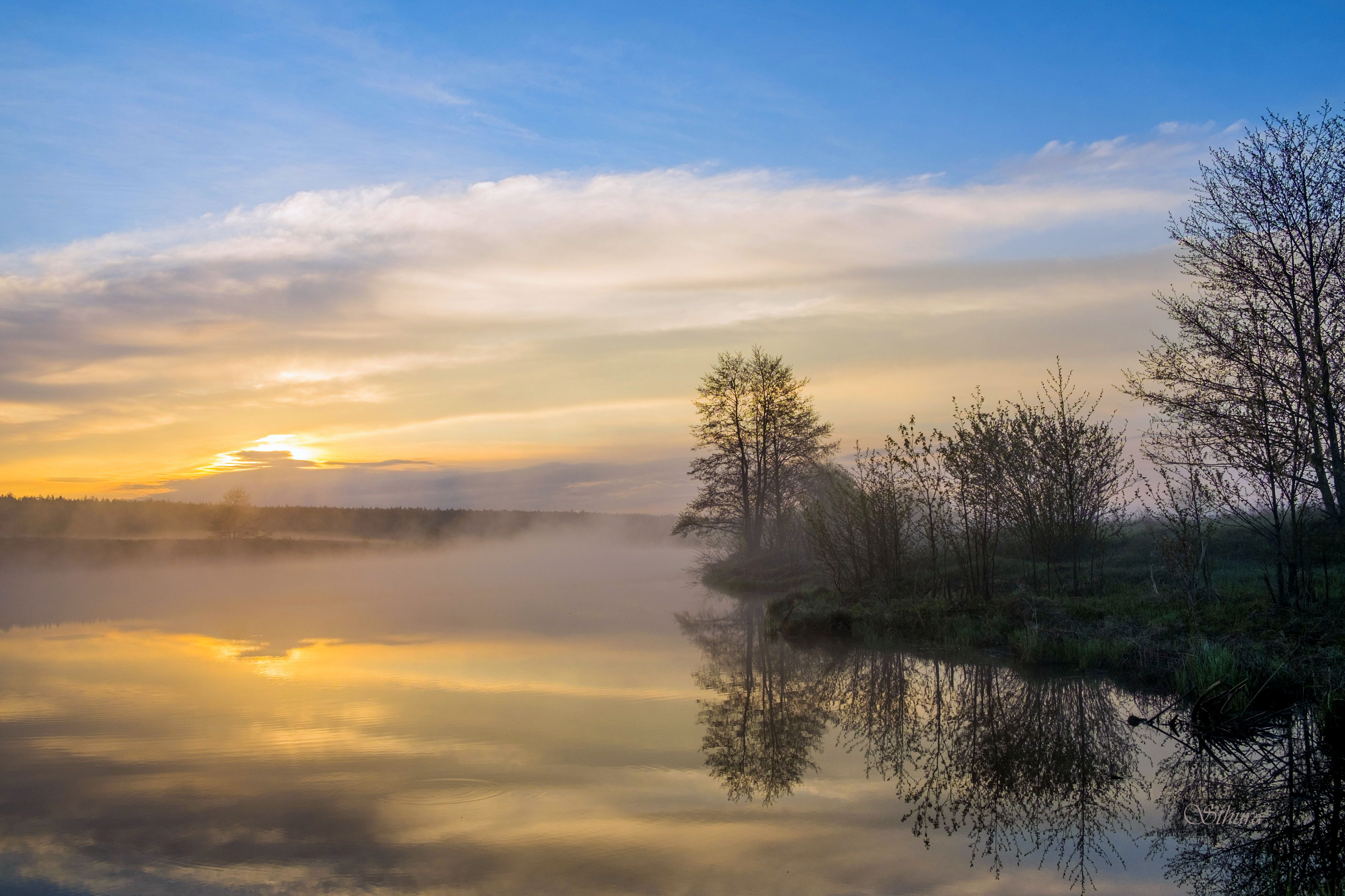 весна облака отражение туман рассвет природа пейзаж, Александр Строков