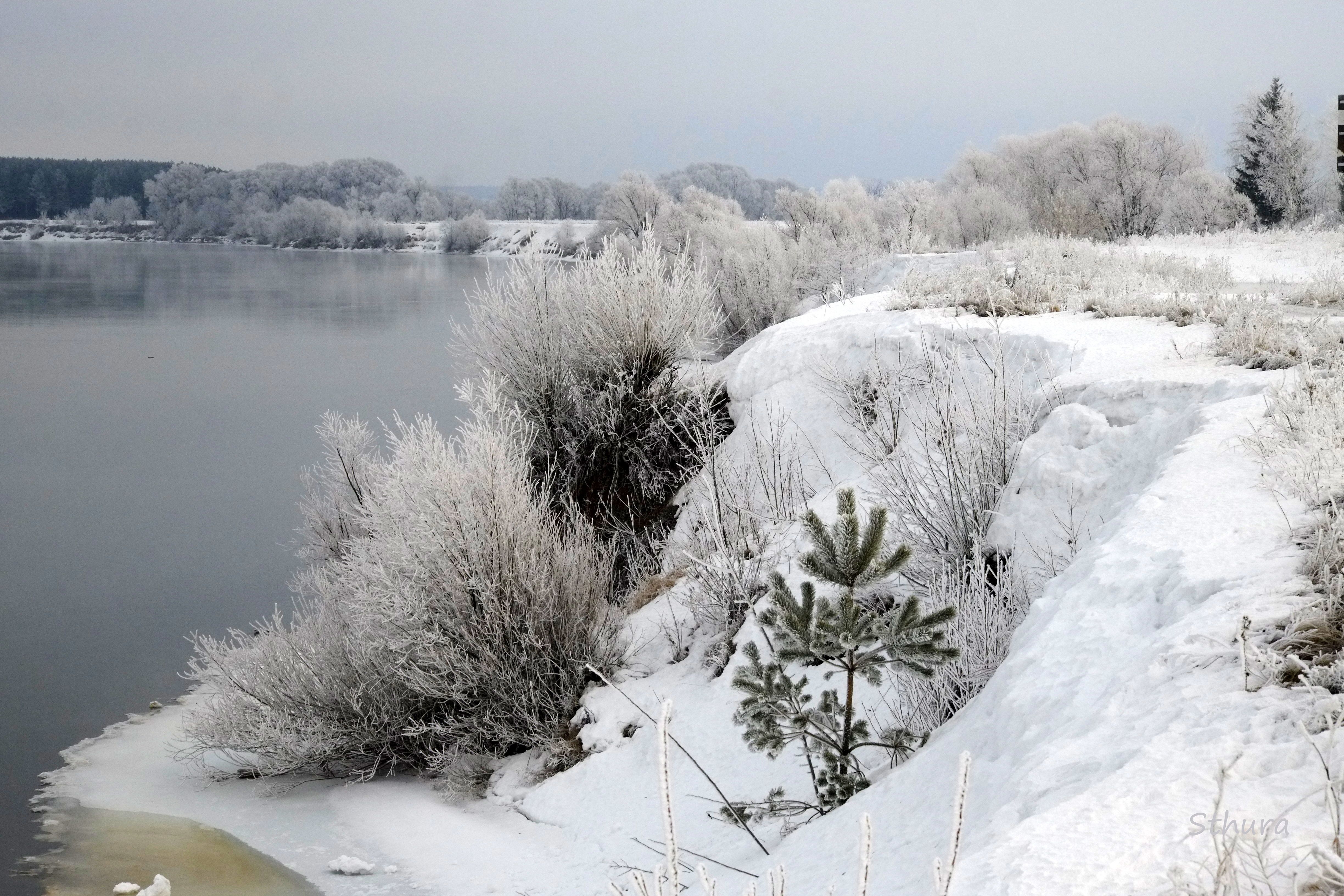 зима река снег берег природа пейзаж, Александр Строков