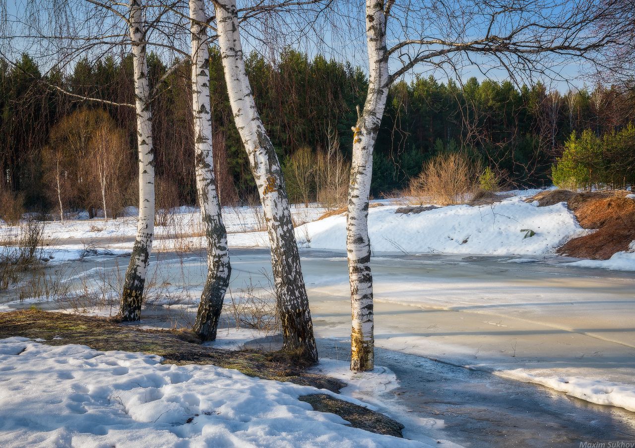 весна, березы, лед, снег, оттепель, Максим Сухов