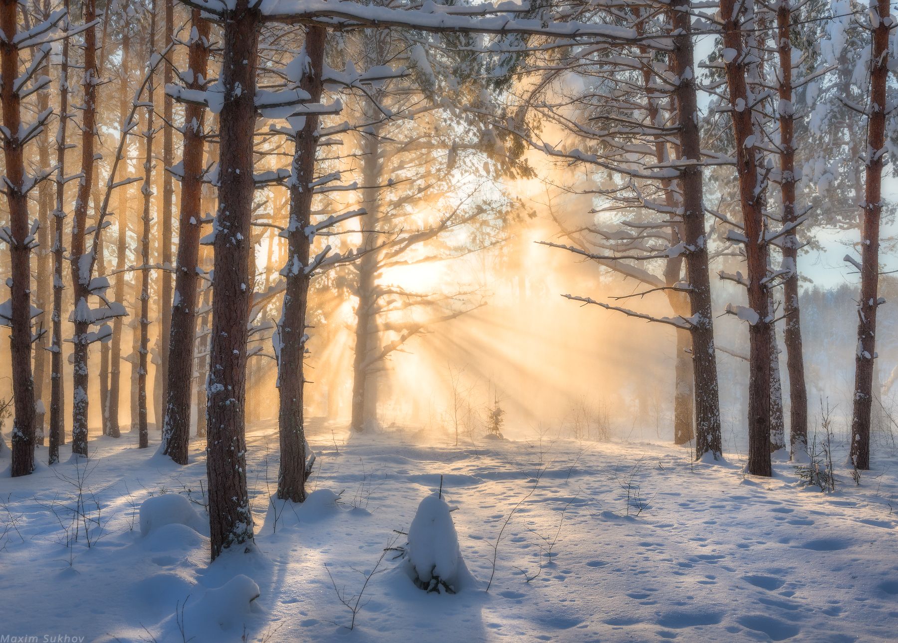 Большая удача - оказаться после снегопада в лесу в ветреный день! Сделал кадр, укрылся с камерой от падающих сугробов, отряхнулся... можно и сменить место съемки. Протопаешь по снегу на снегоступах до нужного места и снова ждешь порыва ветра, который смахнет с высоких сосен их тяжелую ношу.