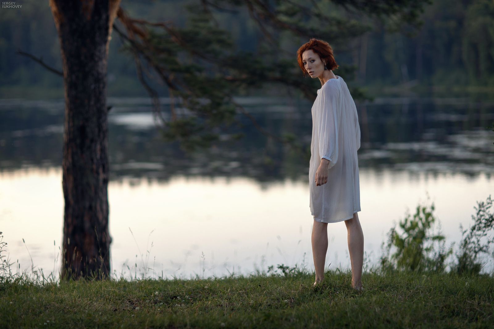 ведьма, русалка, иван купала, озеро, купальщица, рыжая, рыжая девушка, прозрачное платье, белая сорочка, природа, закат, Сергей Суховей