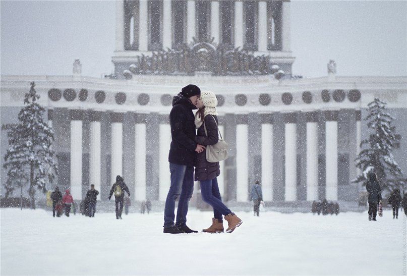 пара, поцелуй, зима, вднх, москва, Болдырев Алексей