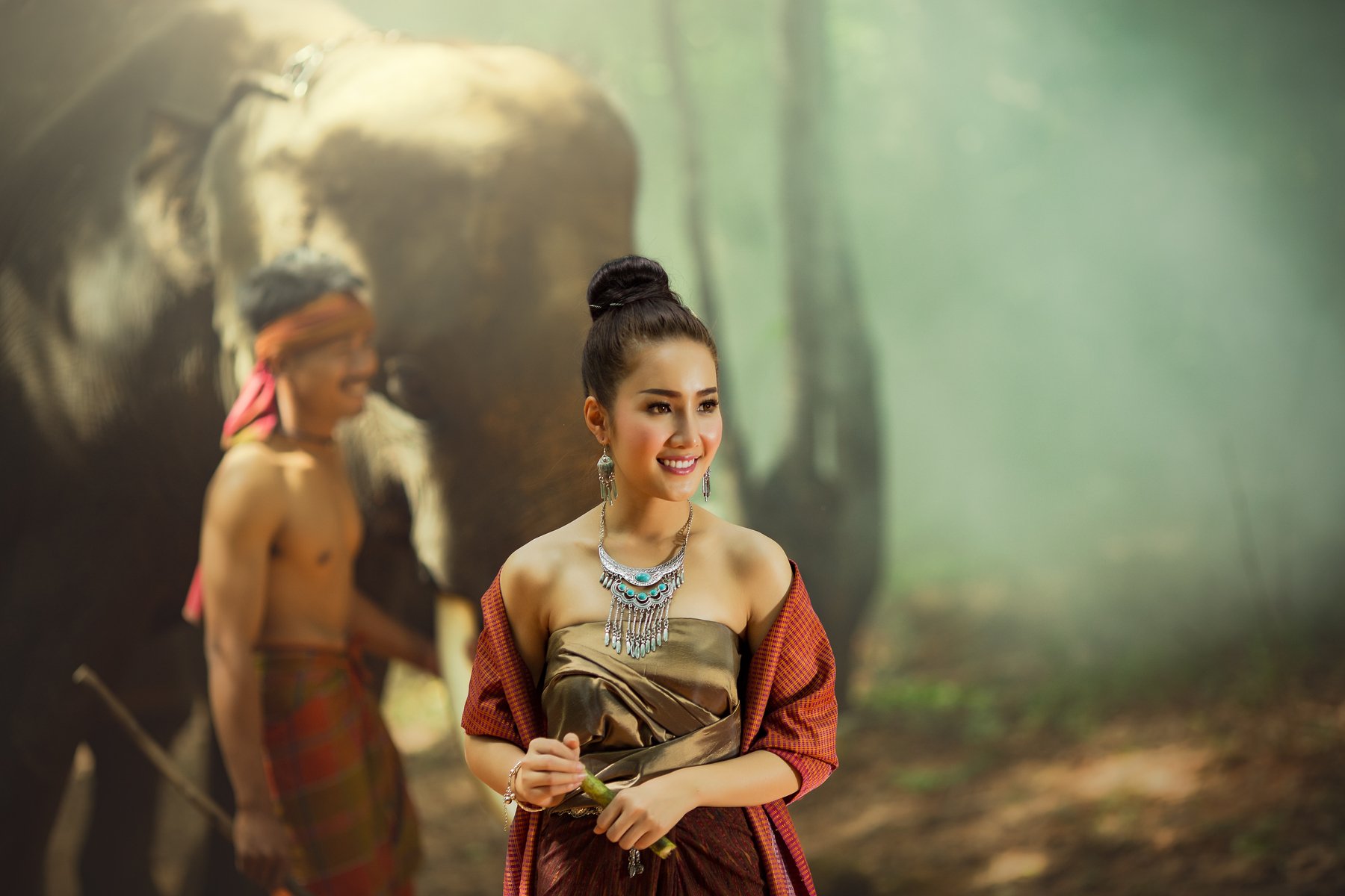 people,portrait,woman,man,elephant,, SUTIPORN SOMNAM