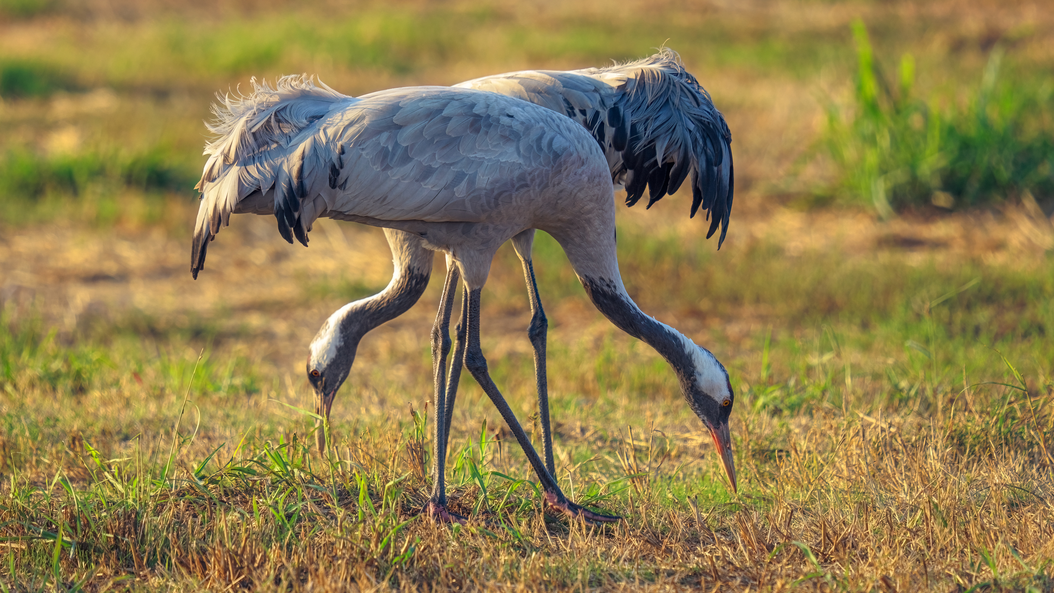 Хорошо снято — птицы в движении, динамика есть, свет мягкий, фон не мешает. Особенно нравится, как они друг с другом взаимодействуют — будто тянут-толкают, как в описании.