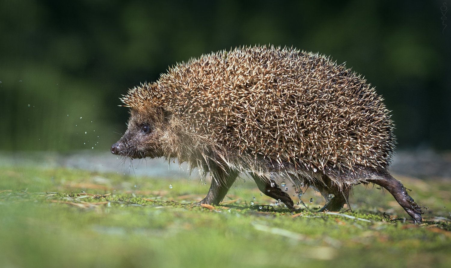 Чаще всего, ёжики приходят подкрепиться вареной курятиной с наступлением сумерек. На всех не хватает. Самые смелые могут заявиться и днем. Но, почувствовав присутствие человека, бегут от миски по кротчайшему пути в лес. Спокойно перебегая неглубокую лужу.