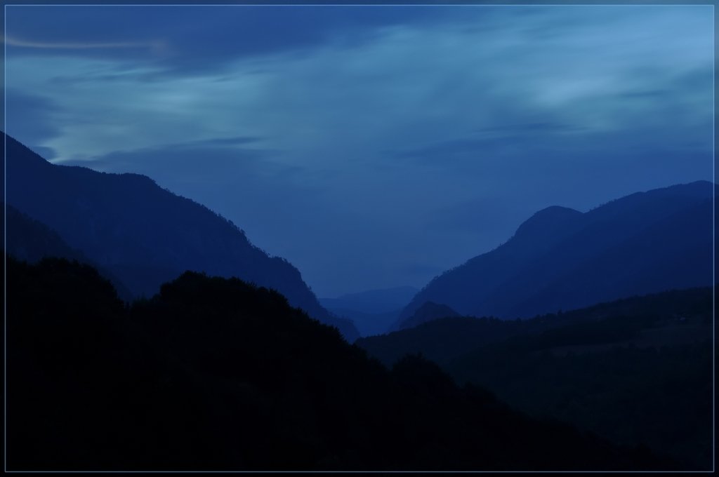 Мне показалось, что фото очень грустное. Сумерки, солнце село за горы, становится холоднее. Но мне это очень нравится, я люблю грустную музыку, и обожаю такие фотографии :-)
