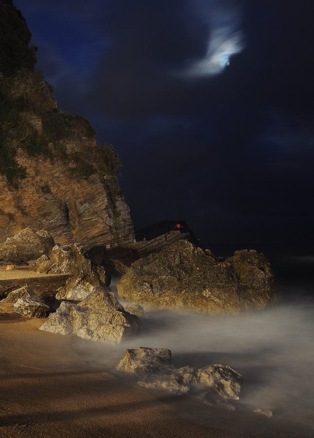 А само фото хорошее, но все же отвлекают тени на песке, и хочется отрезать слева, чтобы небо было сверху полностью, а так сейчас скала перекрывает