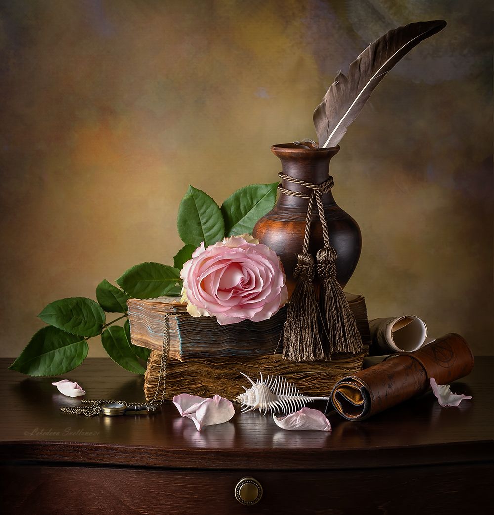 роза,перо,натюрморт, Светлана Л.