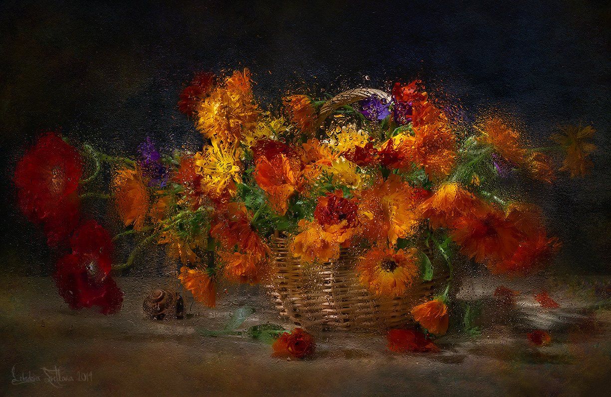 Букет, Календула, Мокрое стекло, Цветы, Светлана Л.