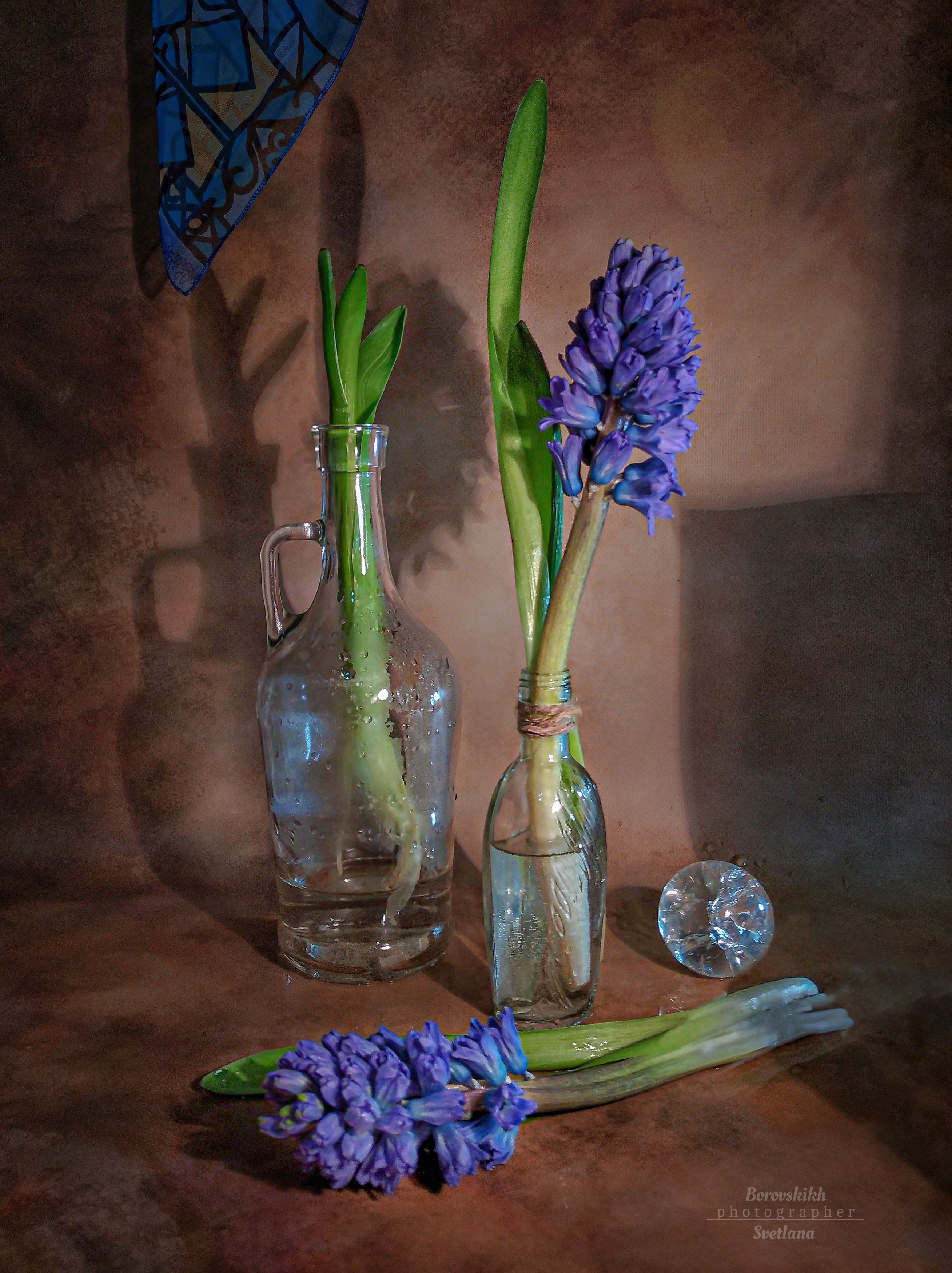 натюрмортнизкий ключdarkphotoart_photoгиацинтцветыдрапировкафото на телефонмобильная обработкастеклокапли